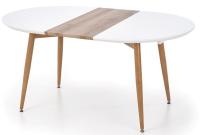 Стол обеденный Edward — стильный раздвижной обеденный стол польской компании Halmar с круглой столешницей из лакированной МДФ белого цвета со вставкой из ламинированной МДФ. Ножки выполнены из крашеной стали цвета дуб медовый.